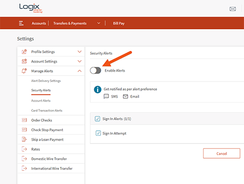 *There is no charge assessed by Logix Federal Credit Union when you enable alerts, but message and data rates may apply. Please contact your carrier for details.