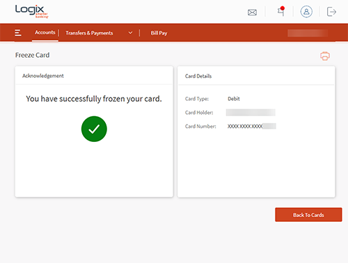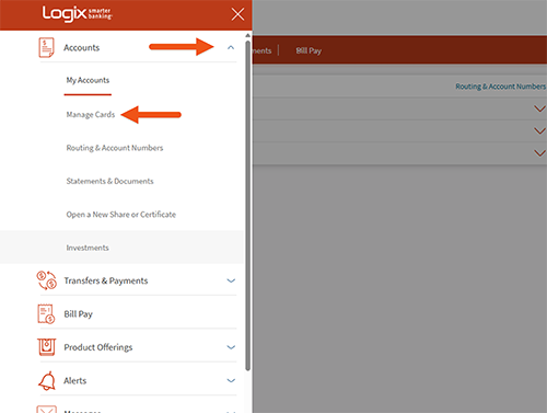 From your Online Banking home page, click on the hamburger menu icon located in the header.