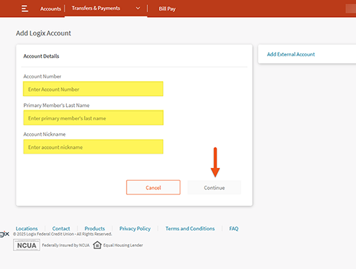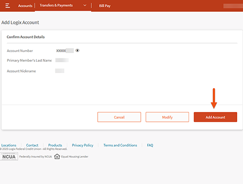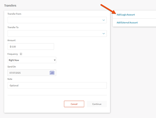 You may now select this account as a recipient for transfers by using the “Transfer To” drop-down menu when making a transfer.